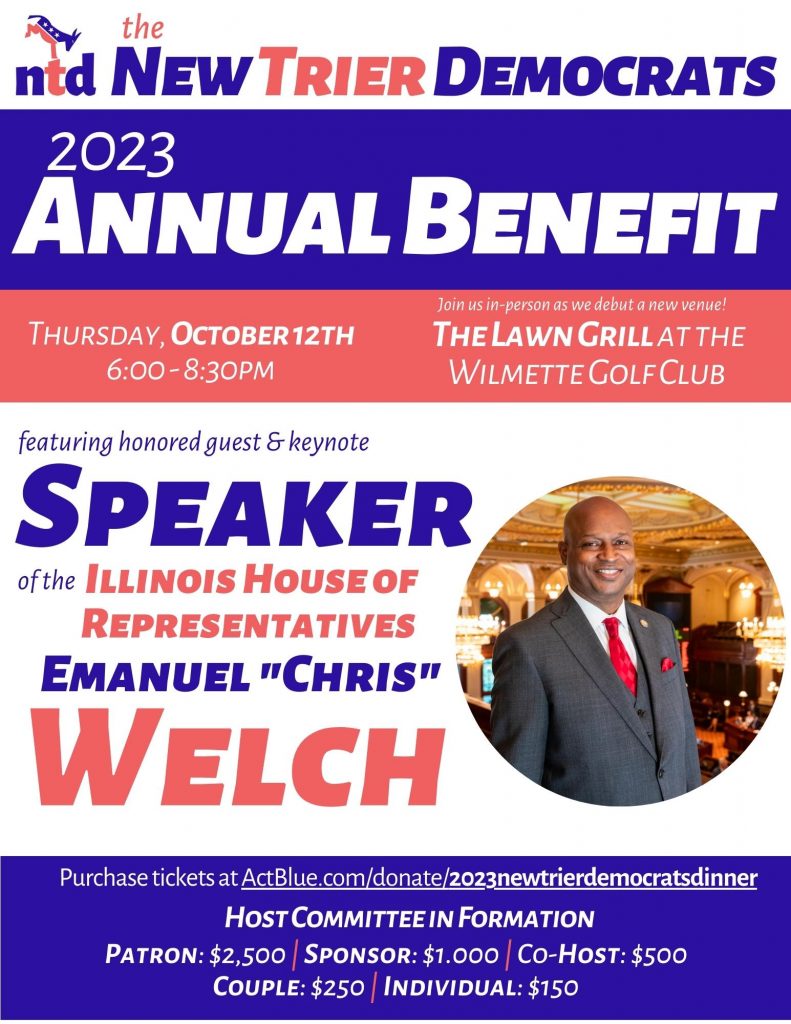 It’s the annual shindig of the dynamic New Trier Democrats, and it’s always quite an affair, and it features our stupendous Democratic Speaker of the Illinois House, Chris Welchand will attract quite a crowd of notables.  It’s highly recommended and it’s at the Lawn Grill of the Wilmette Golf Club, so everything should be scrumptious.  See you there !
